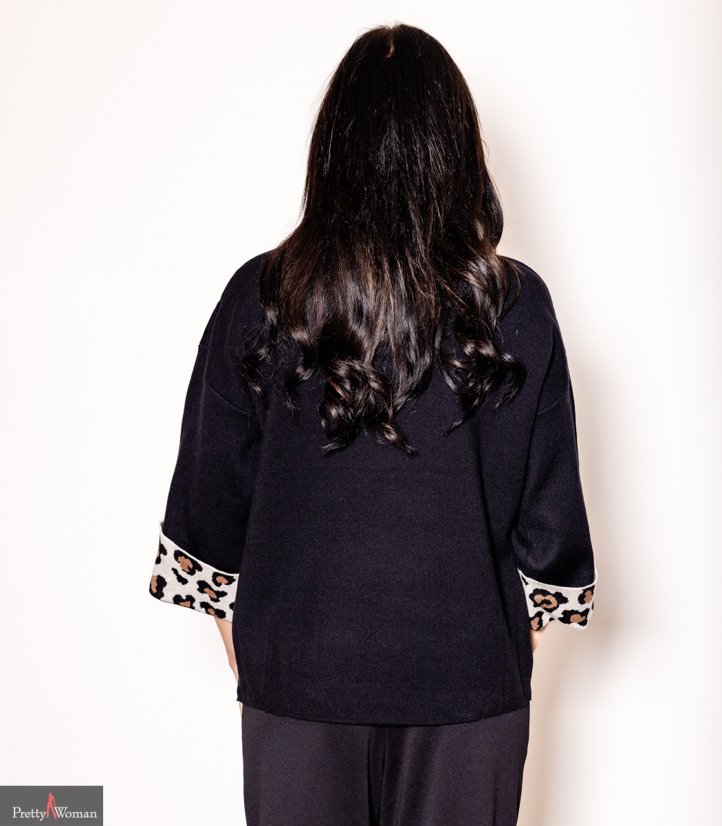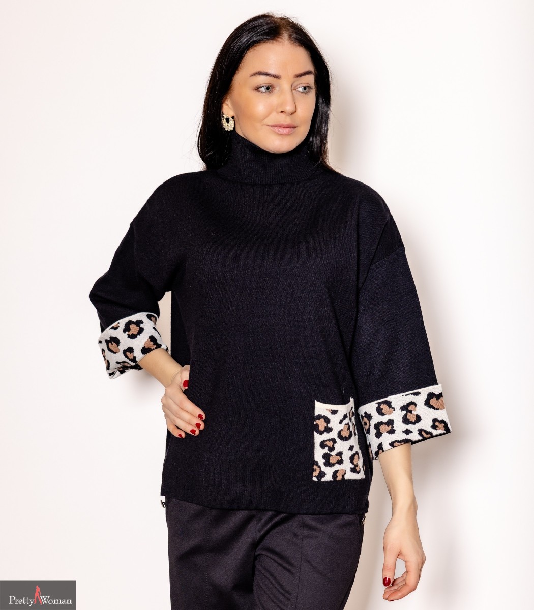 3041 Džemper, leopardi mustriline tasku-must